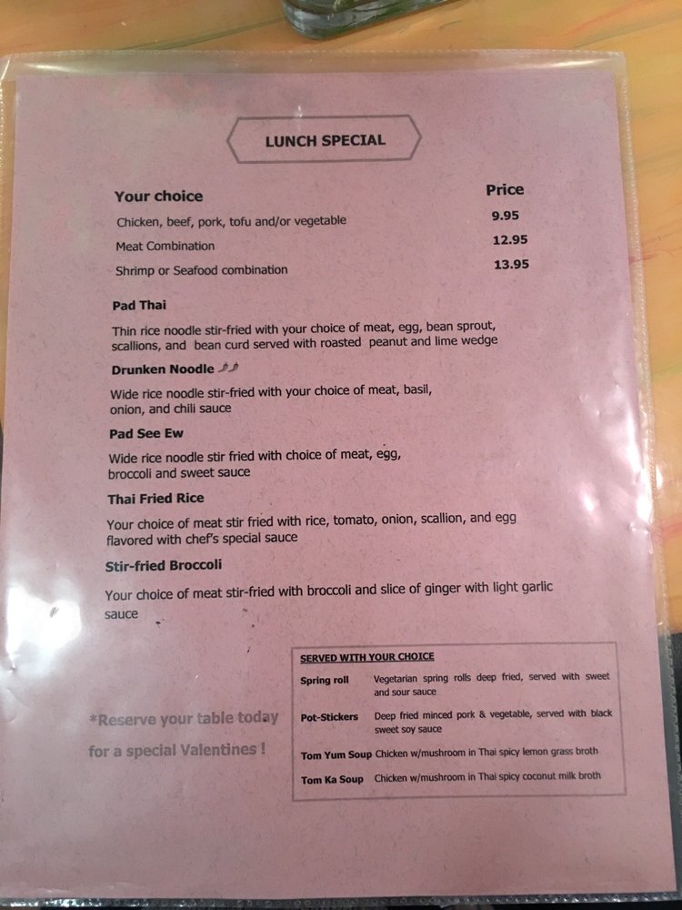 Lucky Thai Restaurant located at 240 W Broad St Falls Church, VA 22046 offers a wide variety of Thai dishes in a casual setting. The menu includes appetizers like Spring Rolls and Chicken Satay, as well as flavorful soups such as Tom Ka Soup and Tom Yum Soup. Customers have praised the restaurant for its delicious food, attentive service, and accommodating atmosphere for larger groups. Specialties like Pad See Ew, Pad Him-Ma-Pan, and Panang Curry with Tofu have garnered positive reviews for their taste and generous portions. The restaurant also offers refreshing beverages like Cherry Temple and Thai Iced Tea to complement the spicy flavors of the dishes. Lucky Thai Restaurant is a great choice for those looking to enjoy authentic Thai cuisine in a welcoming environment.